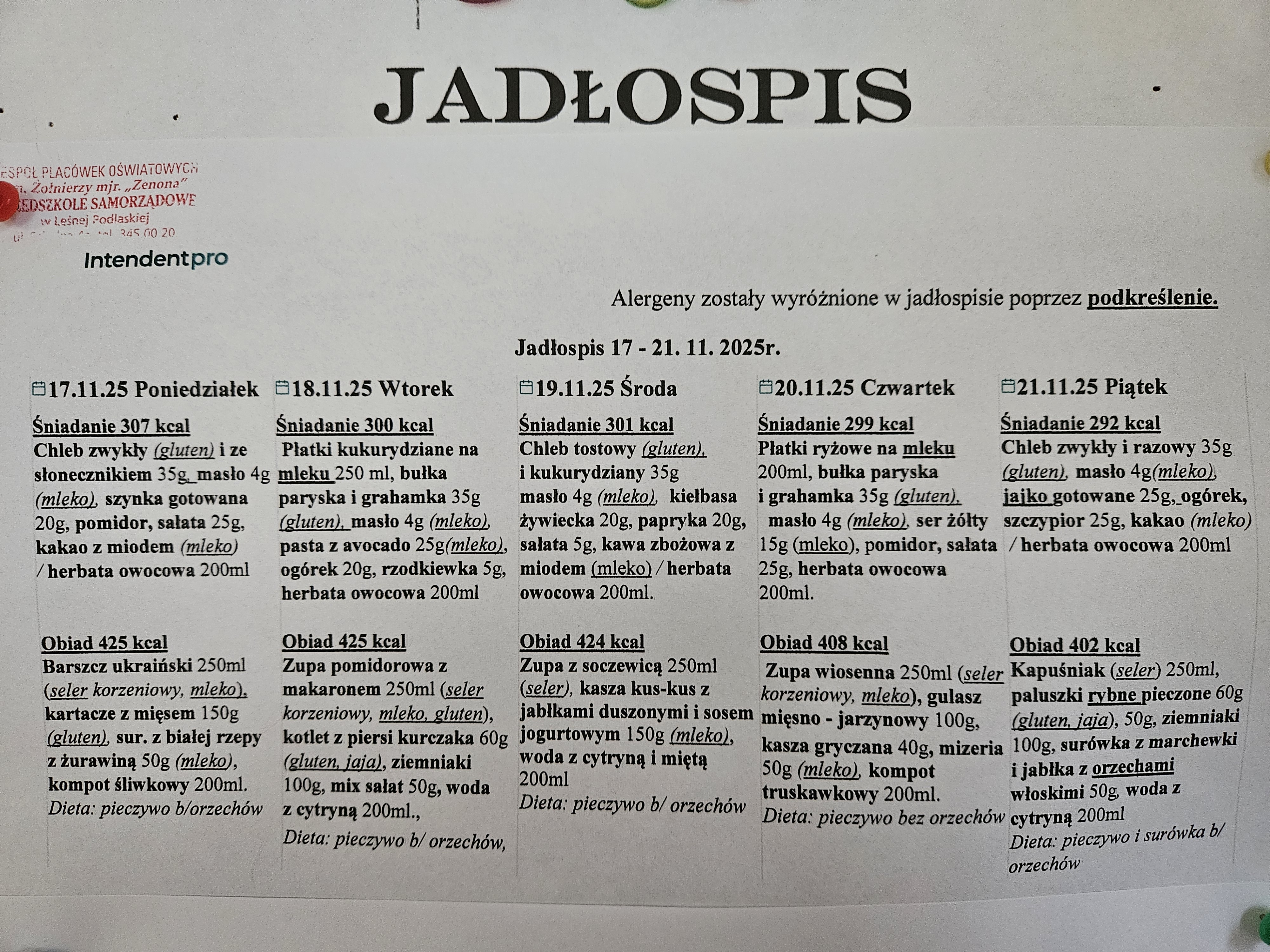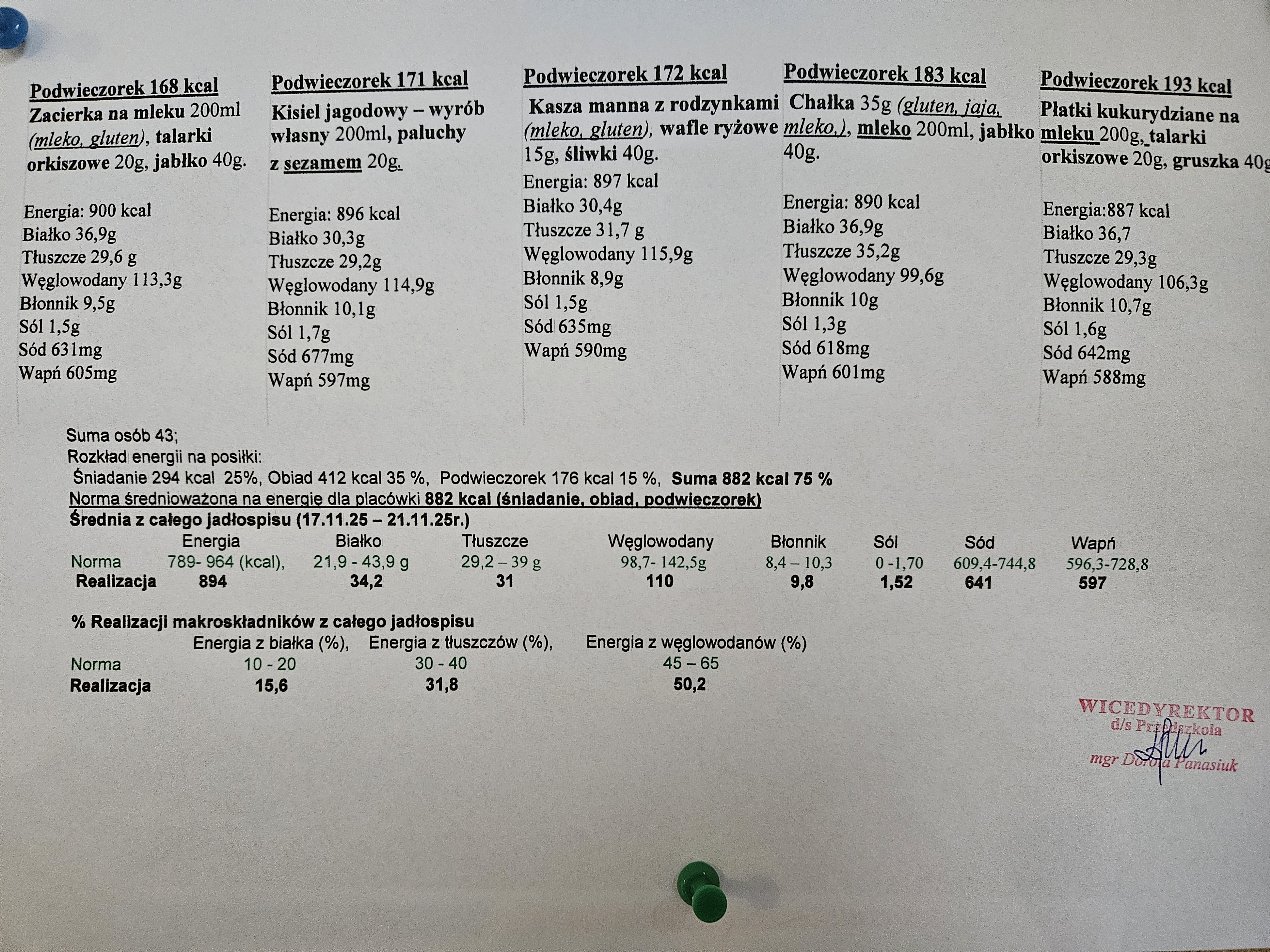 W naszym przedszkolu dzieci żywione są zgodnie z Rozporządzeniem Ministra Zdrowia z dnia 26.07.2016 r. w sprawie wymagań, jakie muszą spełniać środki spożywcze w ramach żywienia zbiorowego w jednostkach oświaty. W placówce korzystamy z profesjonalnego programu komputerowego i aplikacji "Intendent Pro" umożliwiającego układanie jadłospisów zgodnych z normami i regulacjami prawnymi.