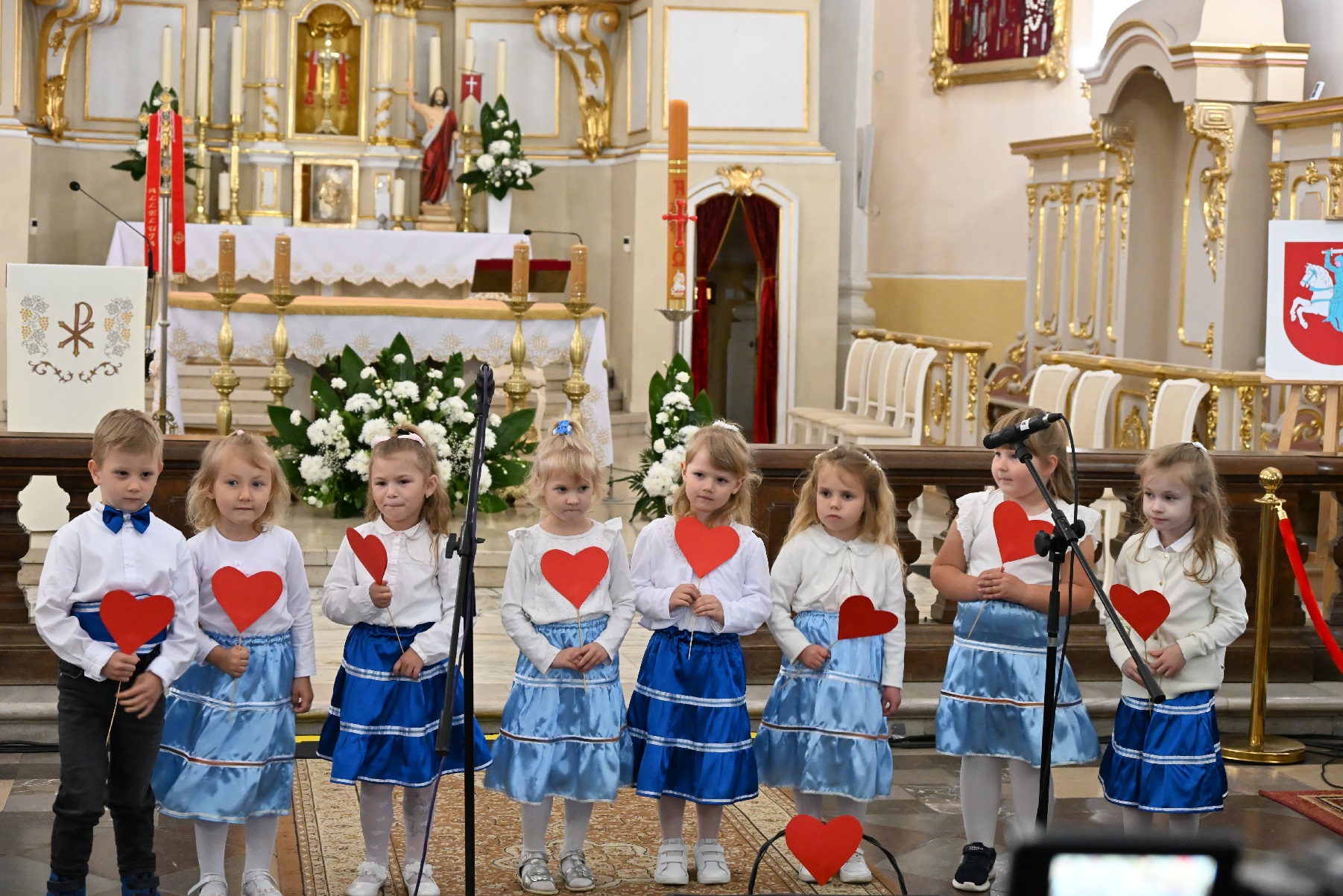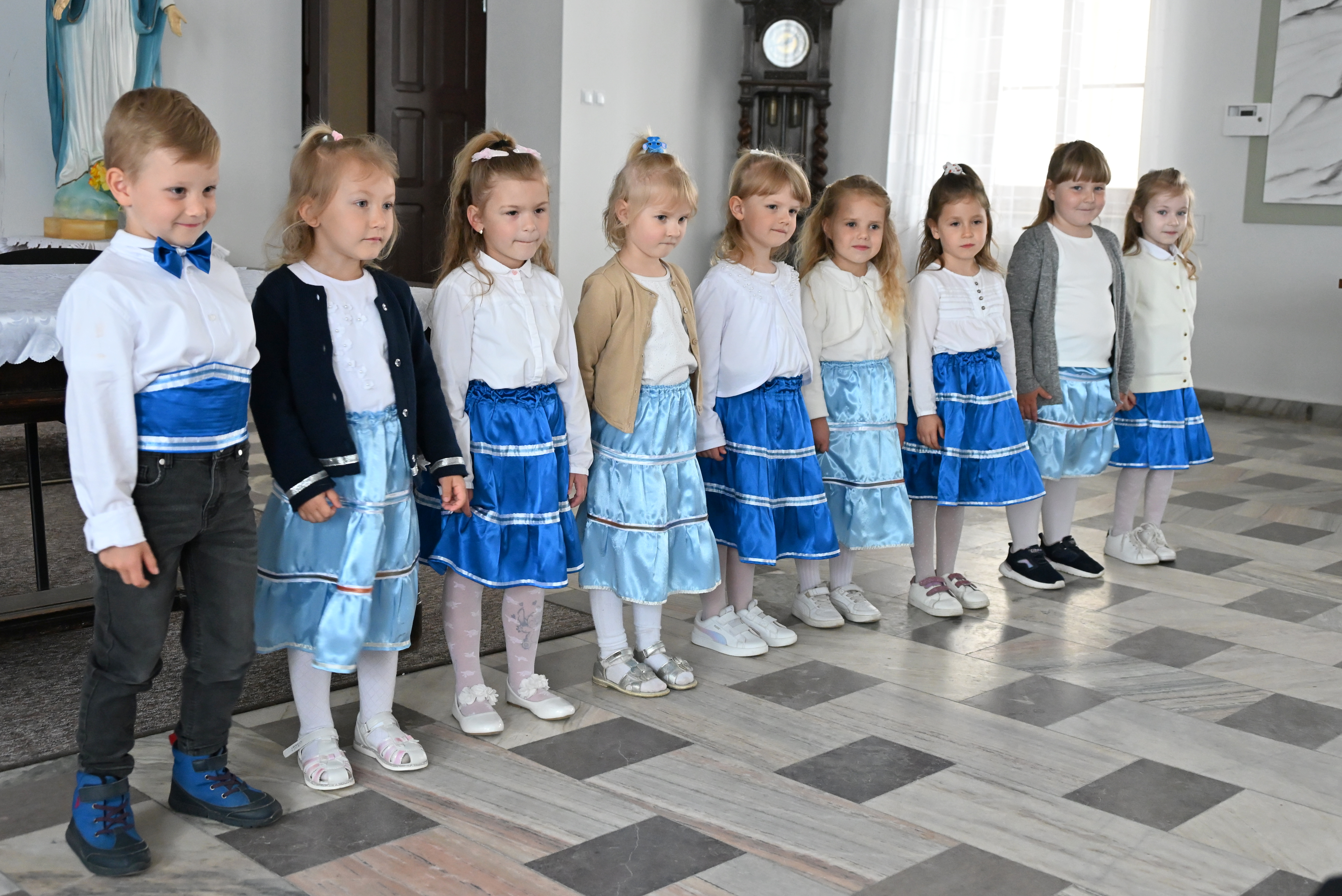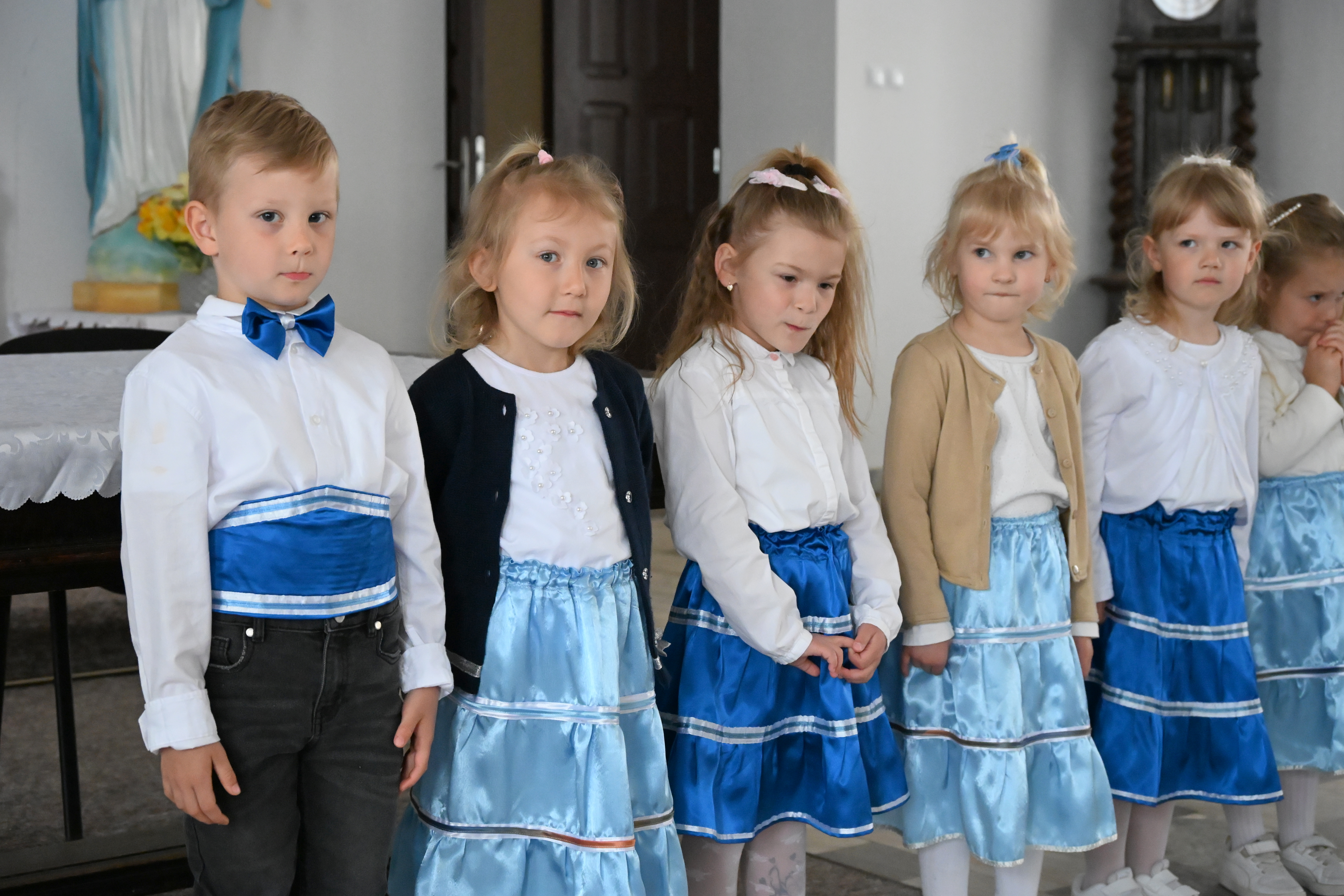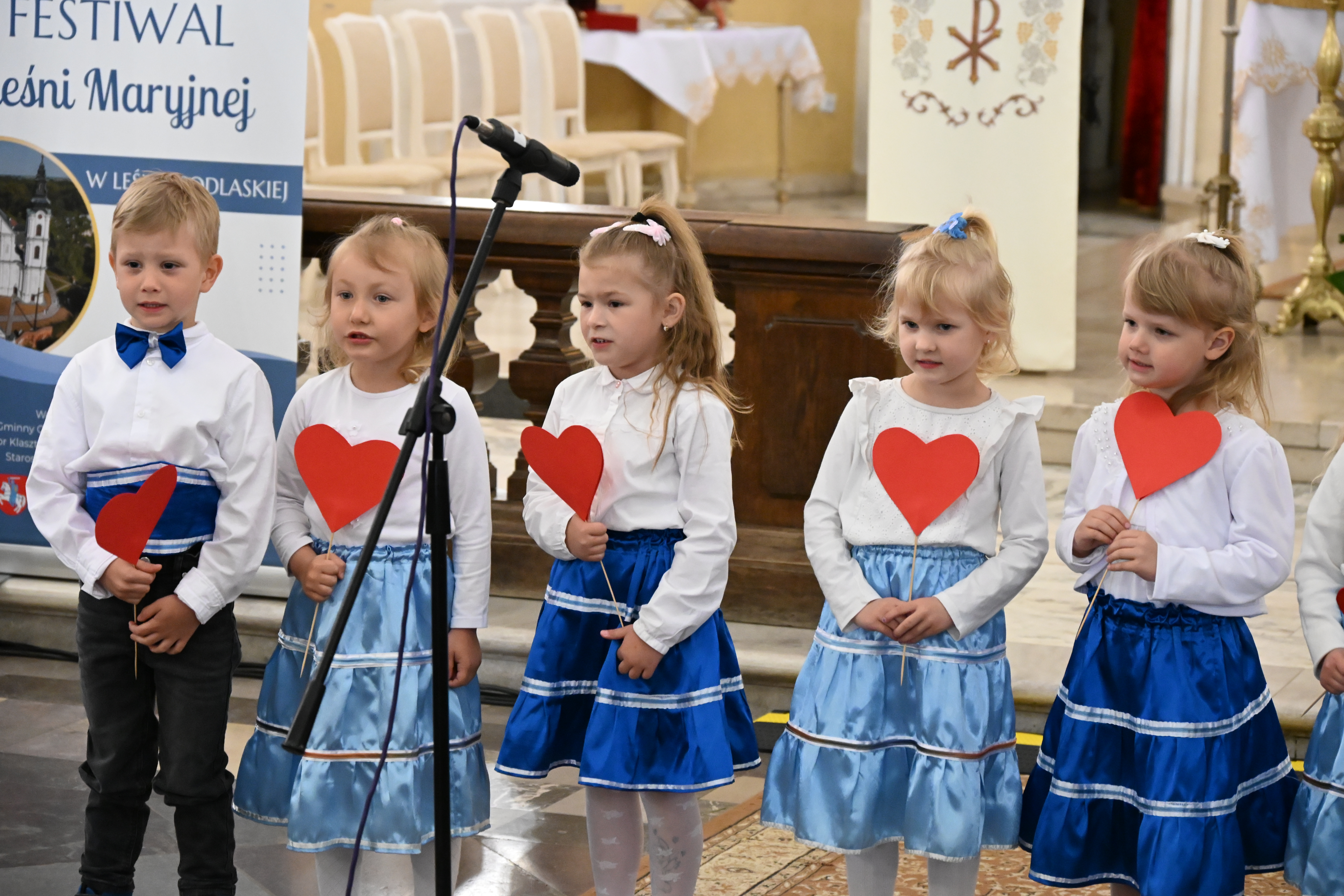 Jak co roku w maju w naszym Sanktuarium Maryjnym organizowany jest Podlaski Festiwal Pieśni Maryjnej. Tradycją stał się również udział w tym konkursie przedszkolnego zespołu NIEZAPOMINAJKI. W dniu 24 maja 2025 roku 4 – latki z grupy Motylków i Słoneczek reprezentowały w tym konkursie naszą placówkę. Najmłodsi uczestnicy z wielkim sercem i zaangażowaniem wyśpiewały Matce Bożej piosenkę pt. „Kocham Cię Maryjo”, czym zdobyły wielkie brawa publiczności i nagrodę Wójta Gminy Leśna Podlaska. Prezentacji towarzyszyło wiele emocji i wzruszeń. Do występu zagrzewali małych artystów nie tylko Rodzice, ale również członkowie ich rodzin. Nad przygotowaniami dzieci czuwała p. Magdalena Bartniczuk