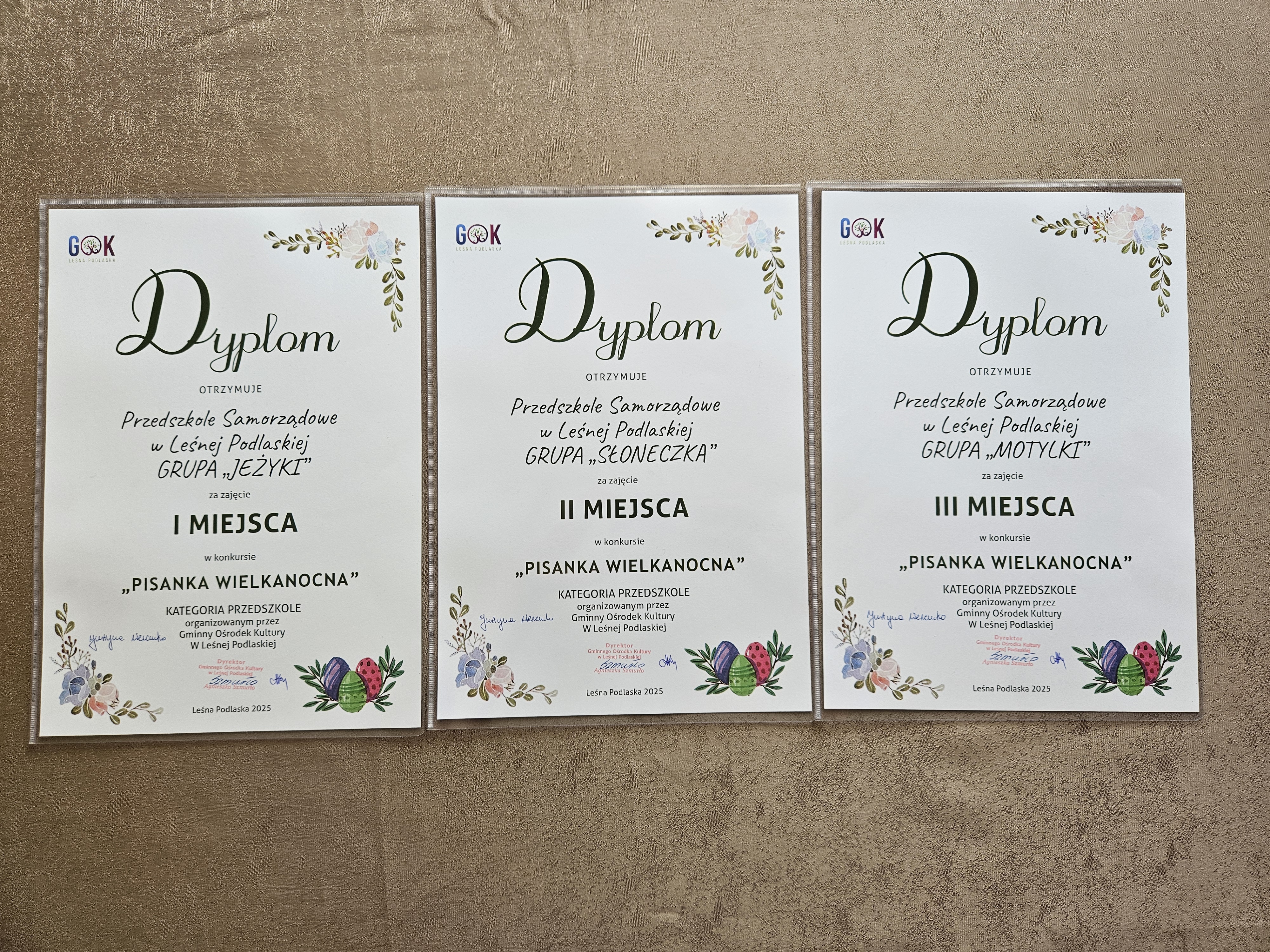 Nasze grupy przedszkolne miały okazję wziąć udział w wyjątkowym konkursie „Pisanka wielkanocna”, organizowanym przez Gminny Ośrodek Kultury w Leśnej Podlaskiej.