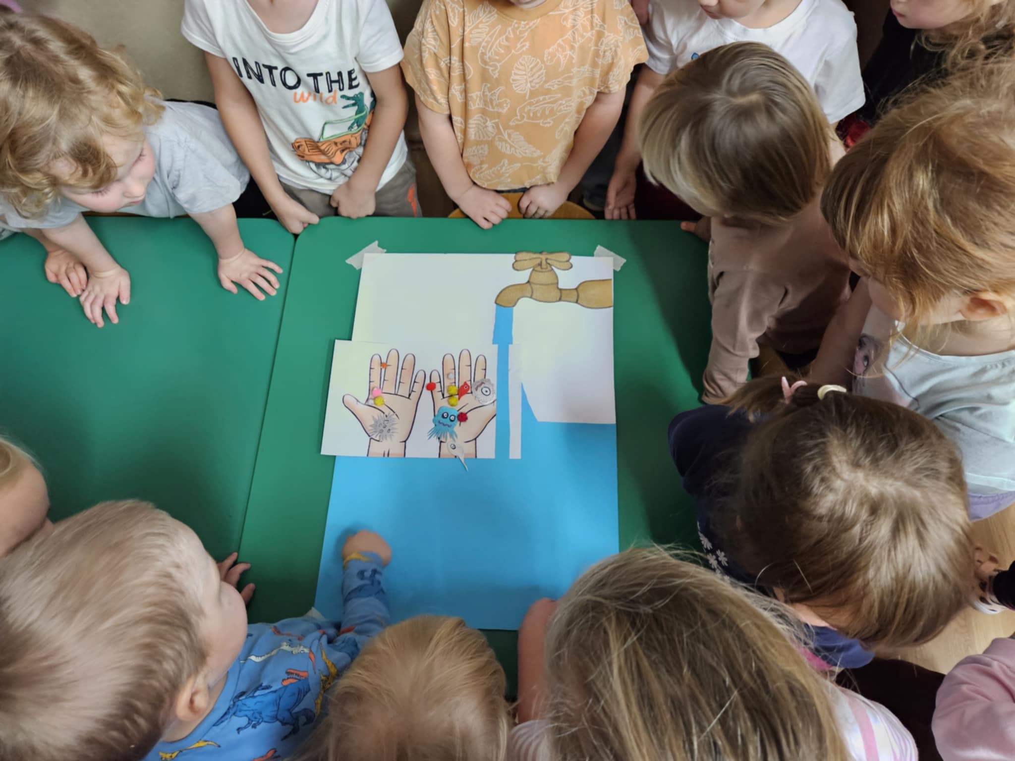 W ramach zajęć dzieci uczestniczyły w fascynujących doświadczeniach, które pozwoliły im zobaczyć „niewidzialny świat” mikrobów. Dzięki pomocom dydaktycznym i zabawom edukacyjnym przedszkolaki dowiedziały się, jak łatwo zarazki mogą się rozprzestrzeniać i jak skutecznie się przed nimi chronić. Nie zabrakło również pogadanek, podczas których dzieci dzieliły się swoimi spostrzeżeniami i zadawały mnóstwo ciekawych pytań. Całość zakończyła się radosnym tańcem integracyjnym, który w rytmie muzyki utrwalał zasady prawidłowego mycia rąk.
