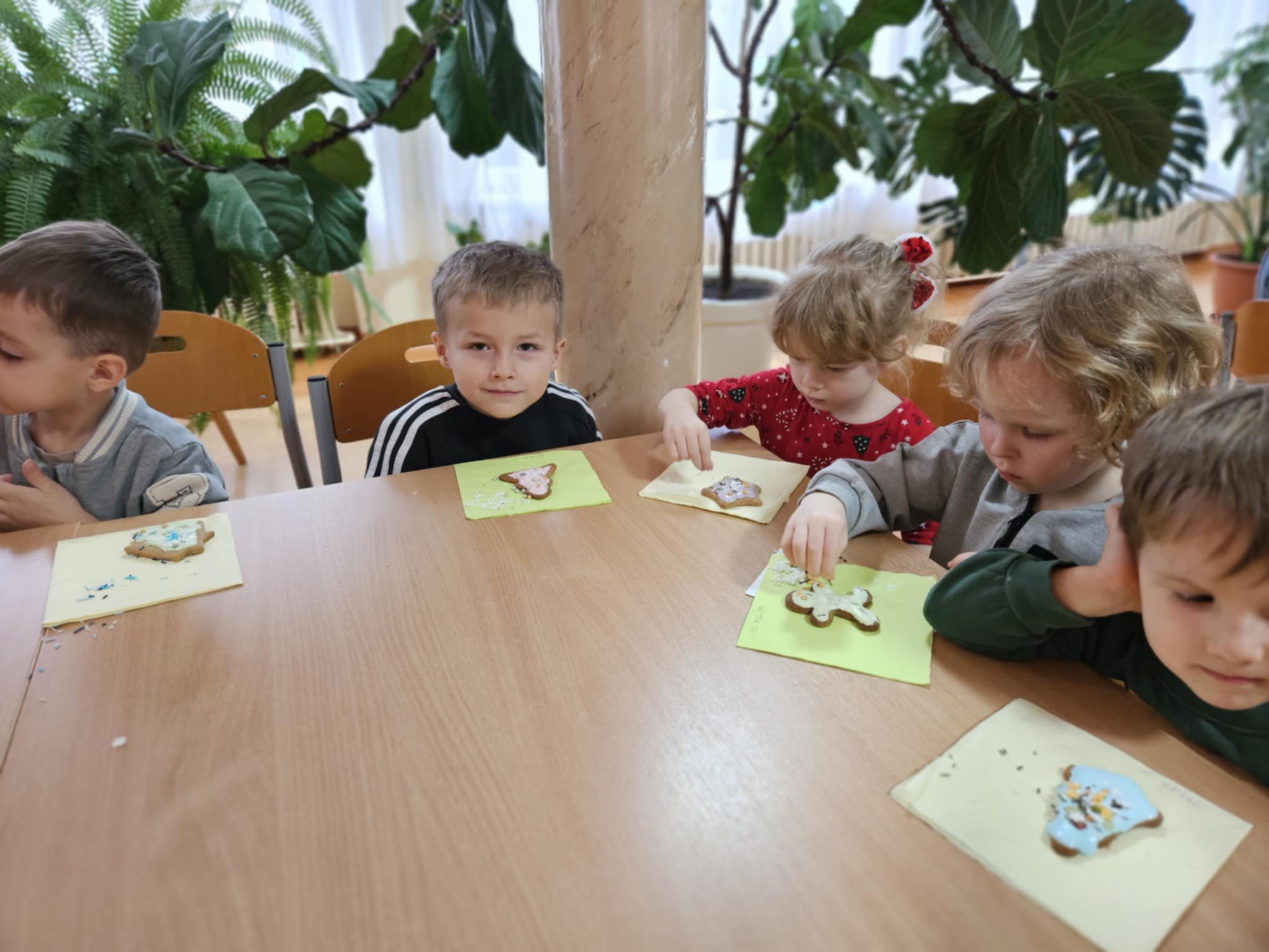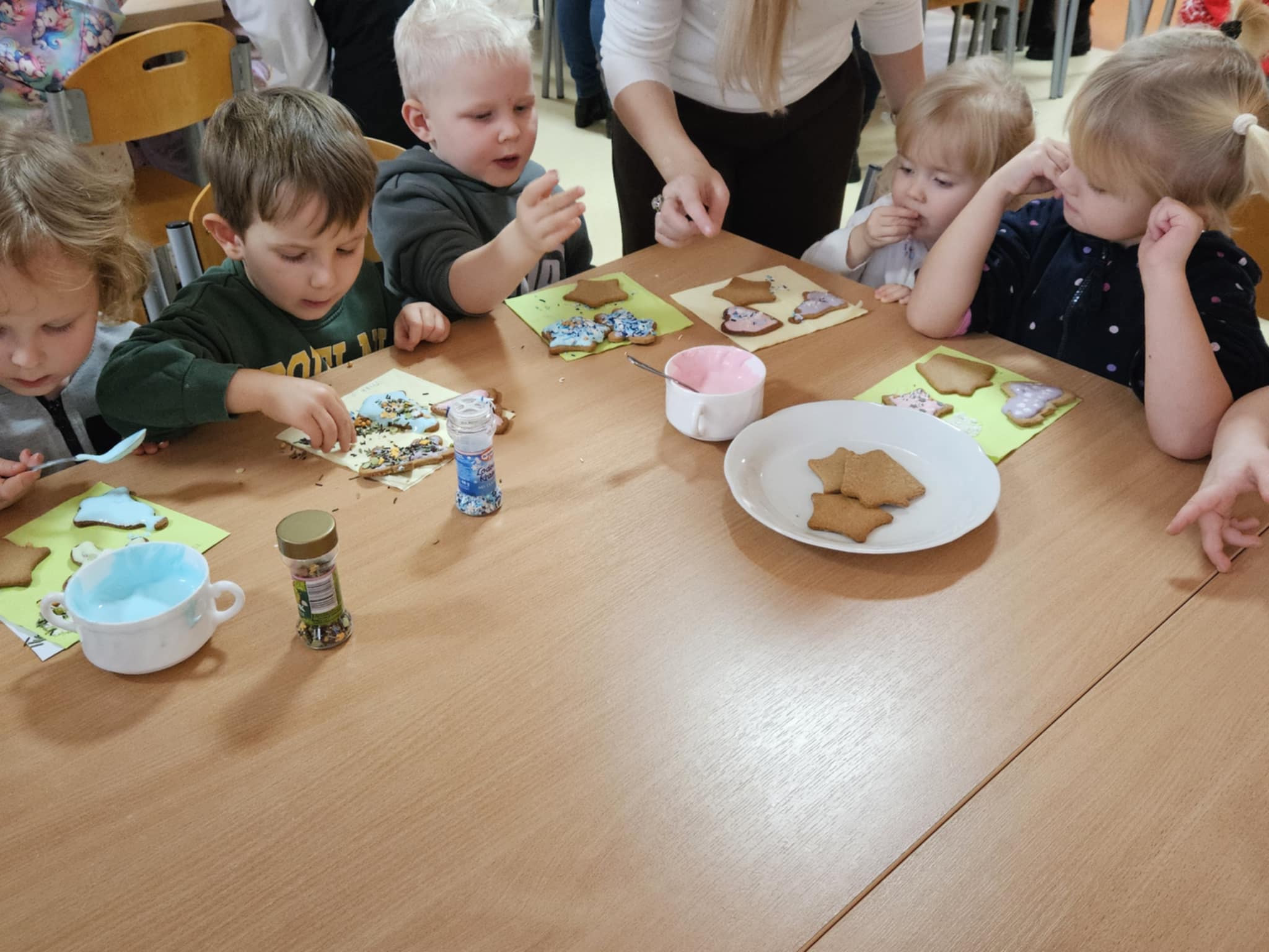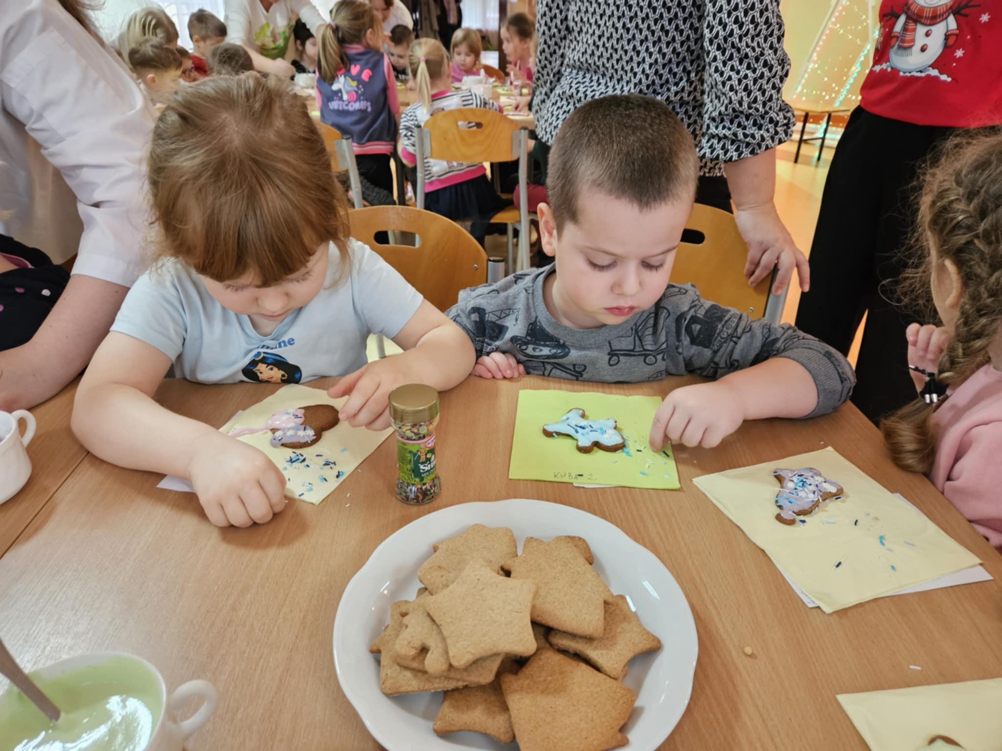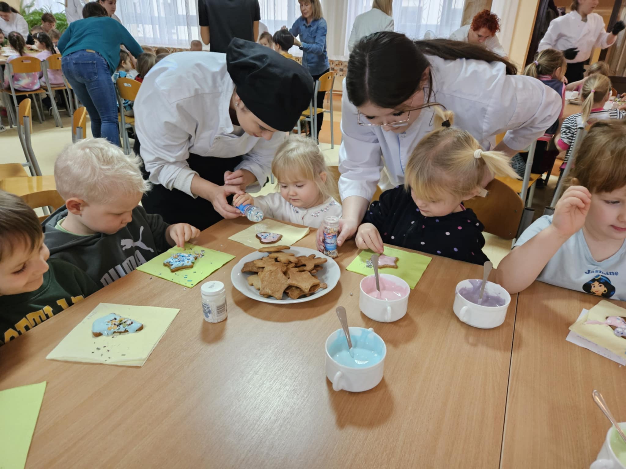 Podczas zajęć dzieci z ogromnym zaangażowaniem ozdabiały pierniki kolorowymi lukrami i posypkami, tworząc prawdziwe małe dzieła sztuki. Dzieciom podobały się te kreatywne zajęcia, a nawet bardzo im posmakowały... :)