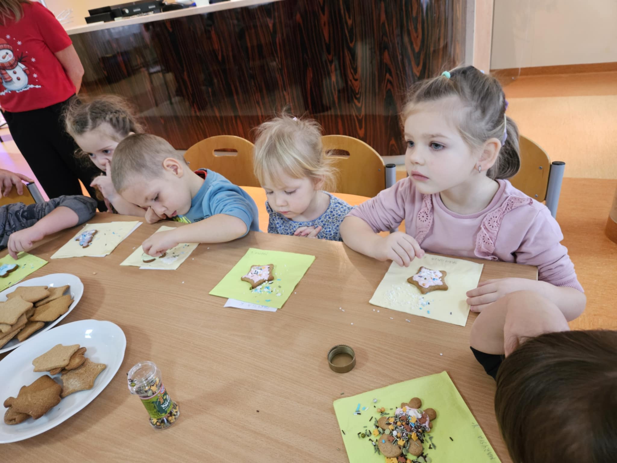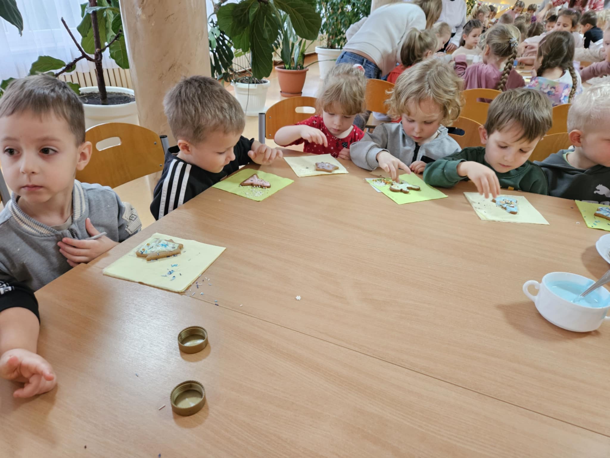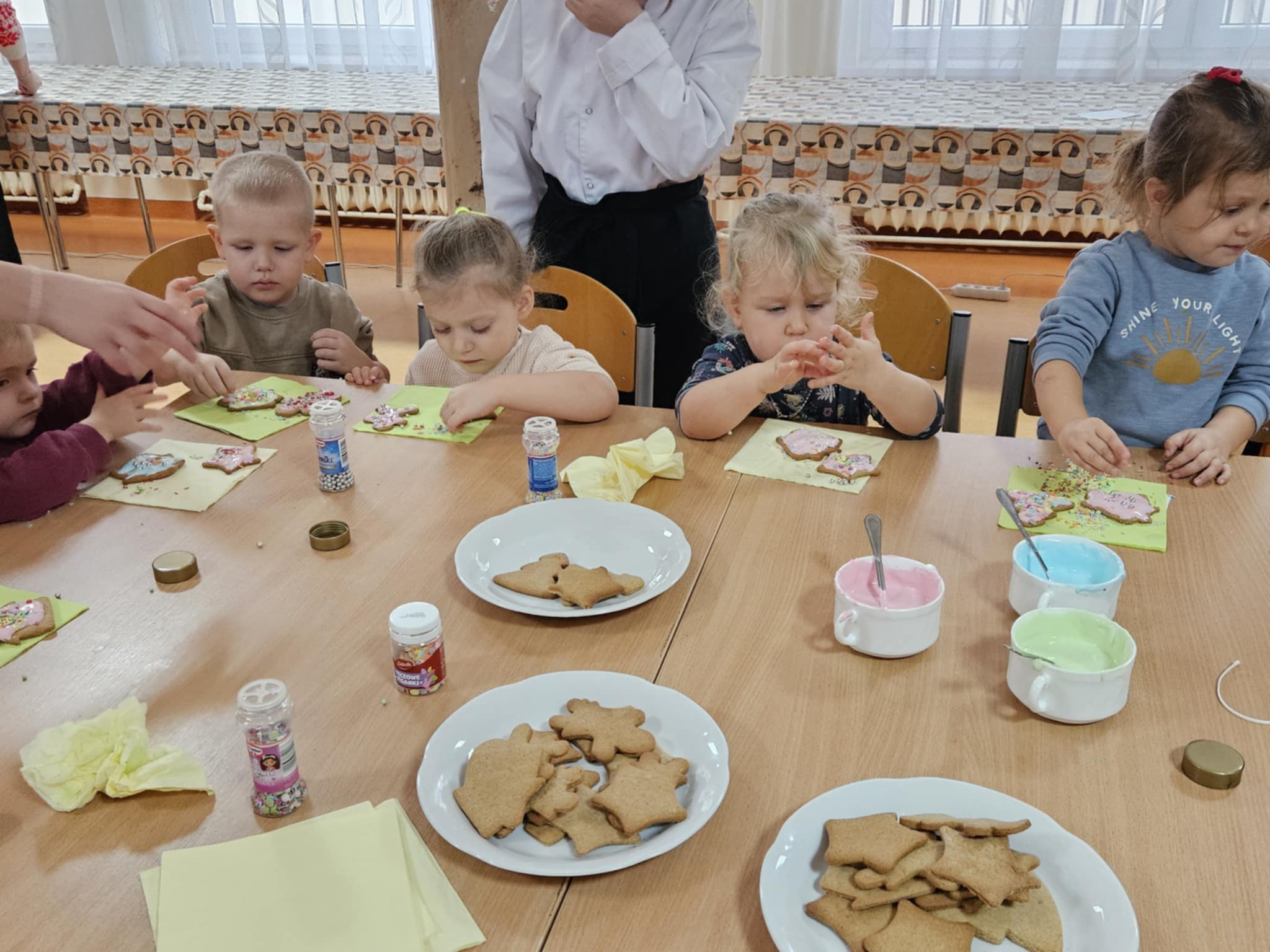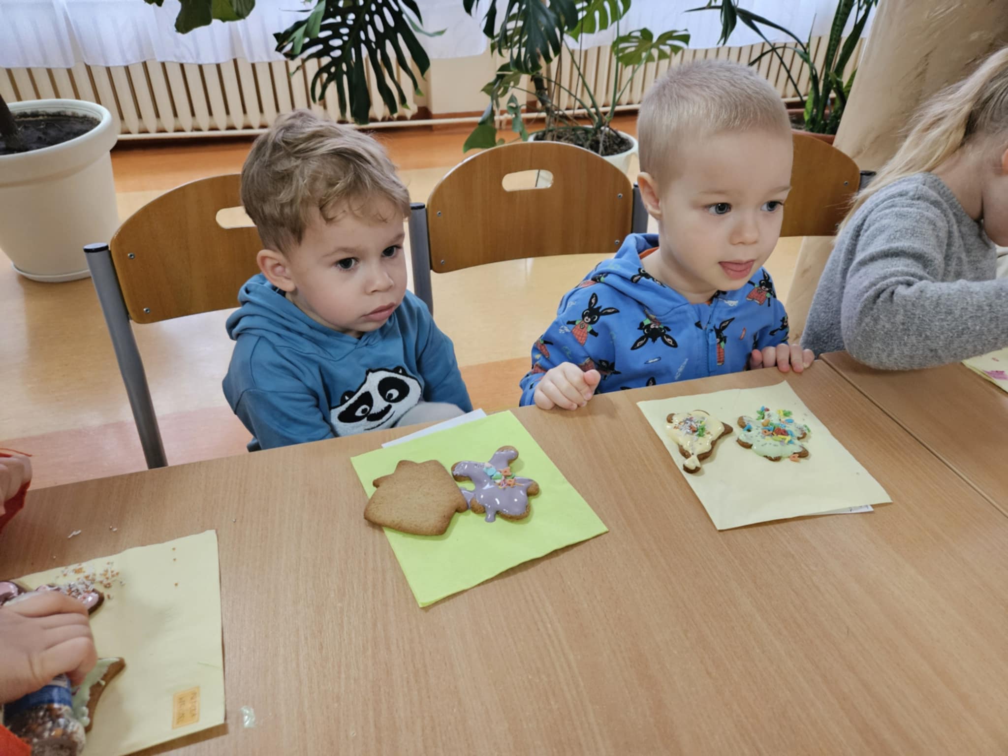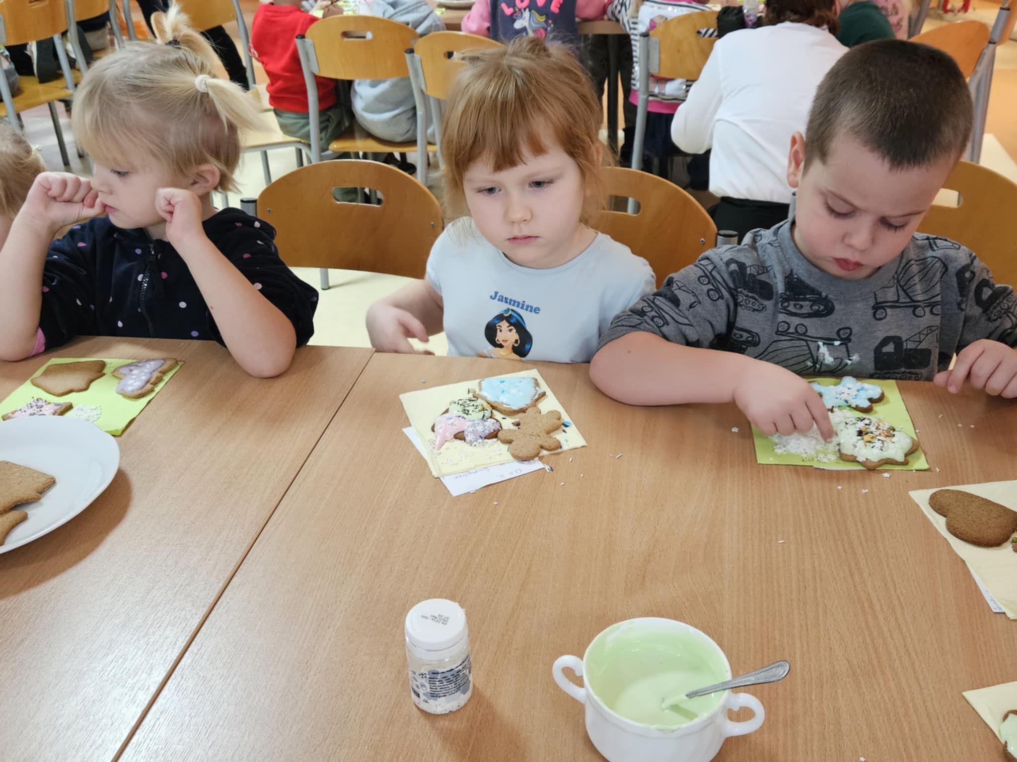 Podczas zajęć dzieci z ogromnym zaangażowaniem ozdabiały pierniki kolorowymi lukrami i posypkami, tworząc prawdziwe małe dzieła sztuki. Dzieciom podobały się te kreatywne zajęcia, a nawet bardzo im posmakowały... :)