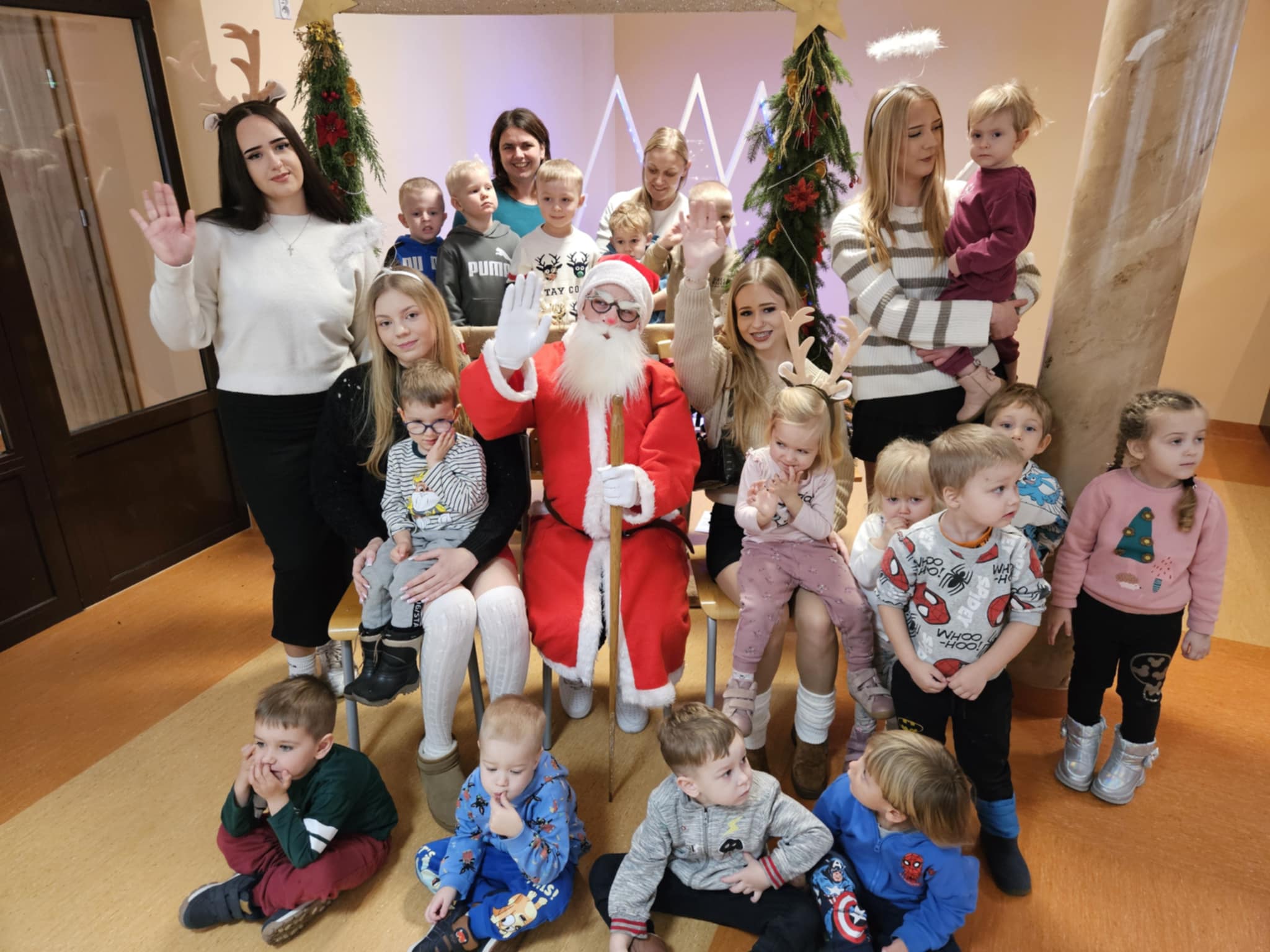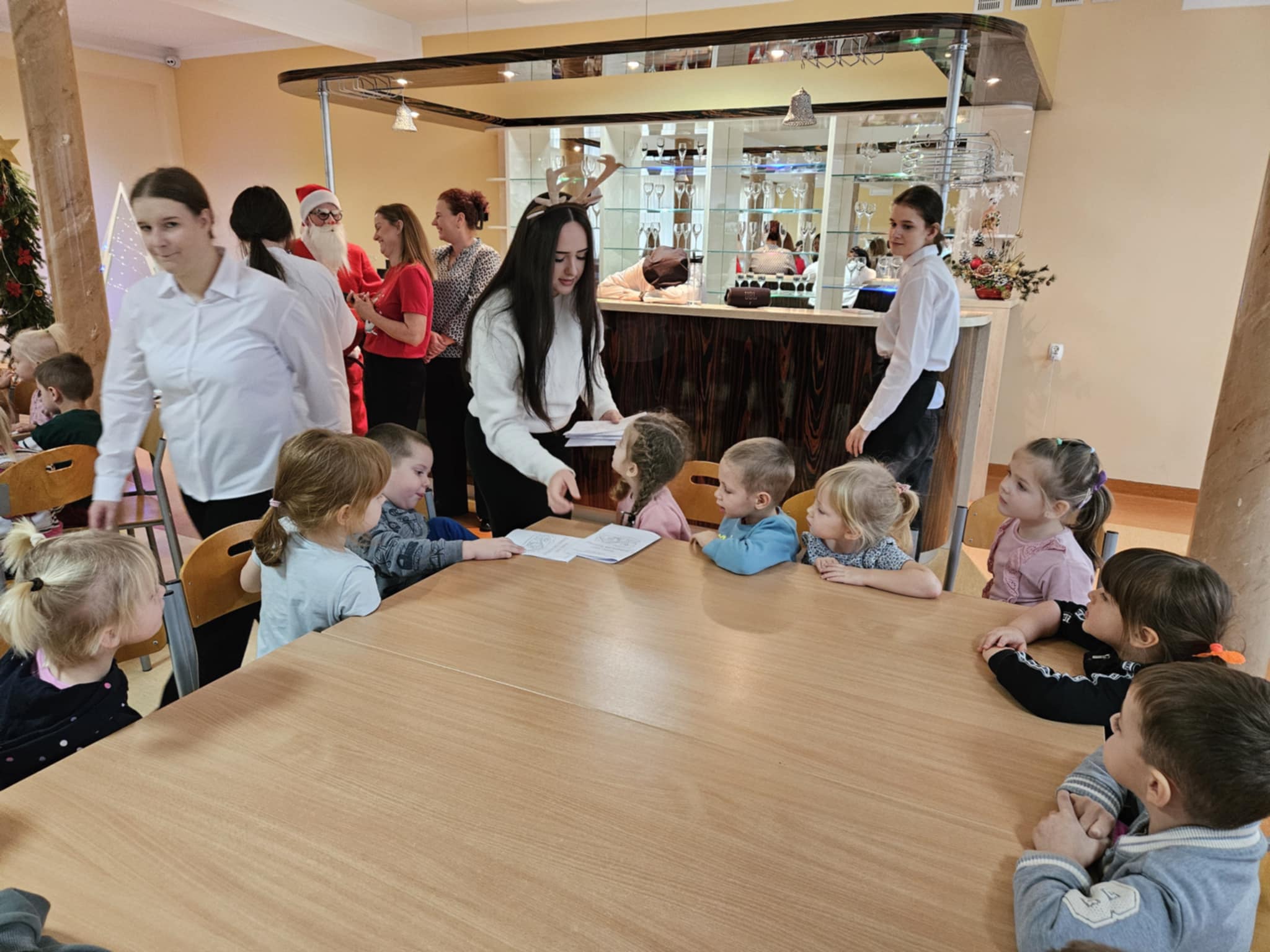 Na zakończenie warsztatów czekała na dzieci niespodzianka – odwiedził nas sam Mikołaj! Wręczył przedszkolakom piękne, świąteczne kolorowanki.