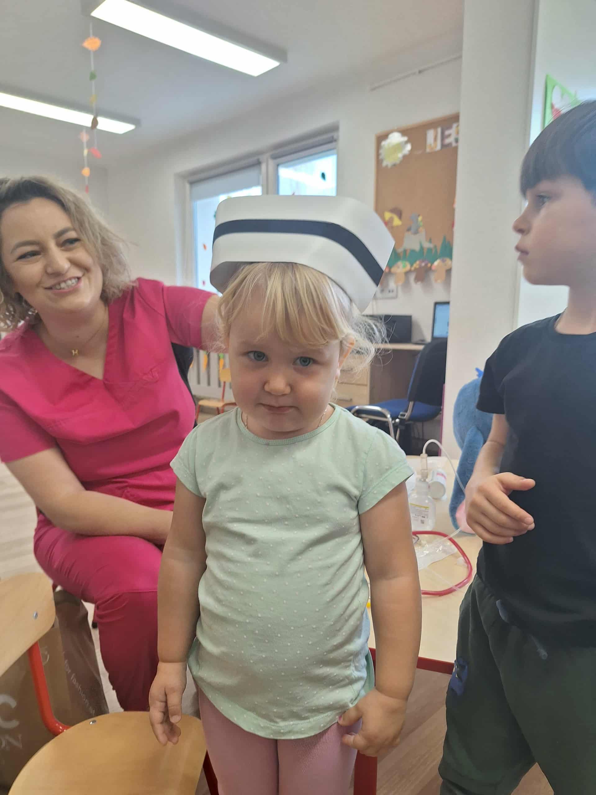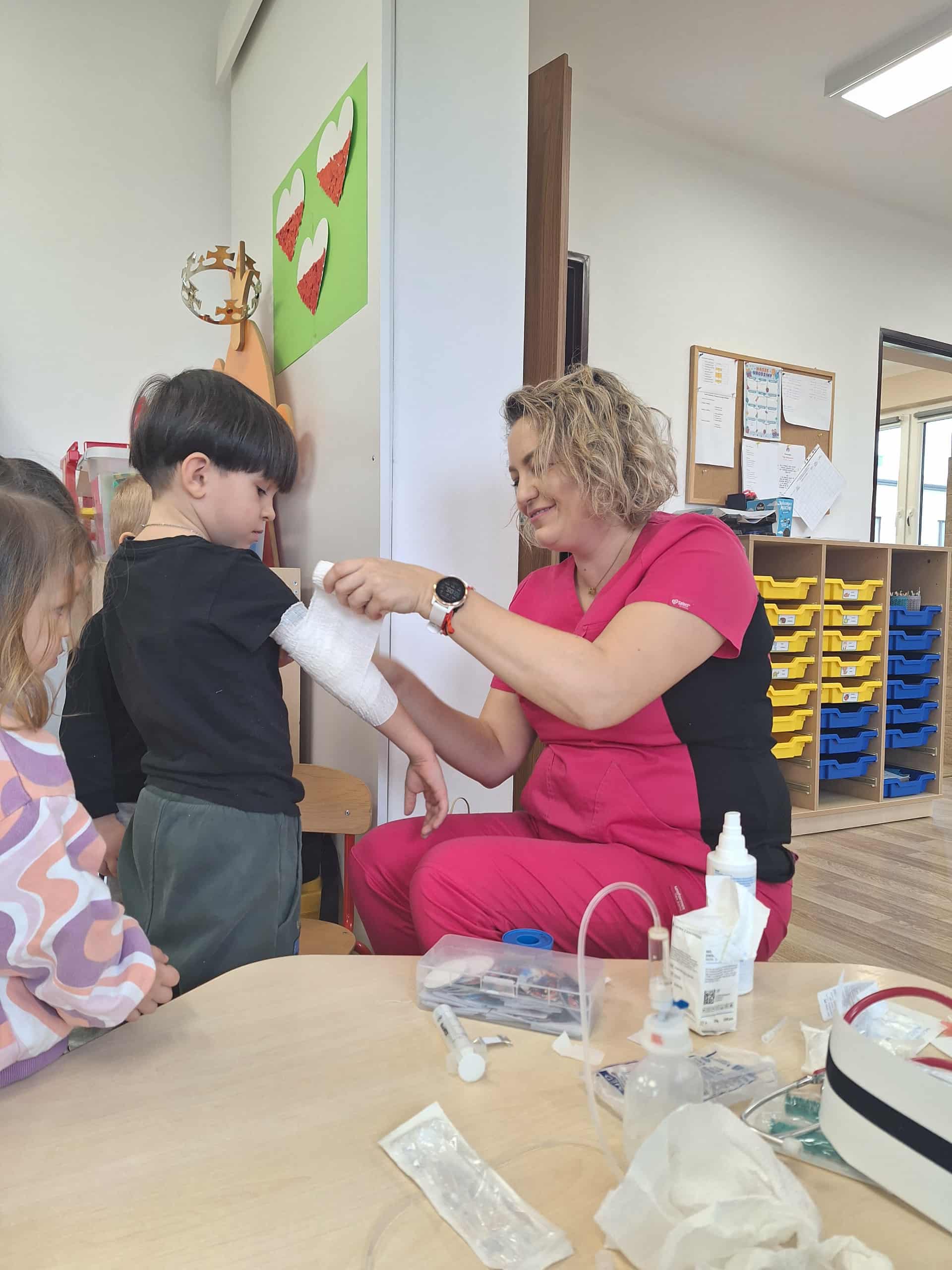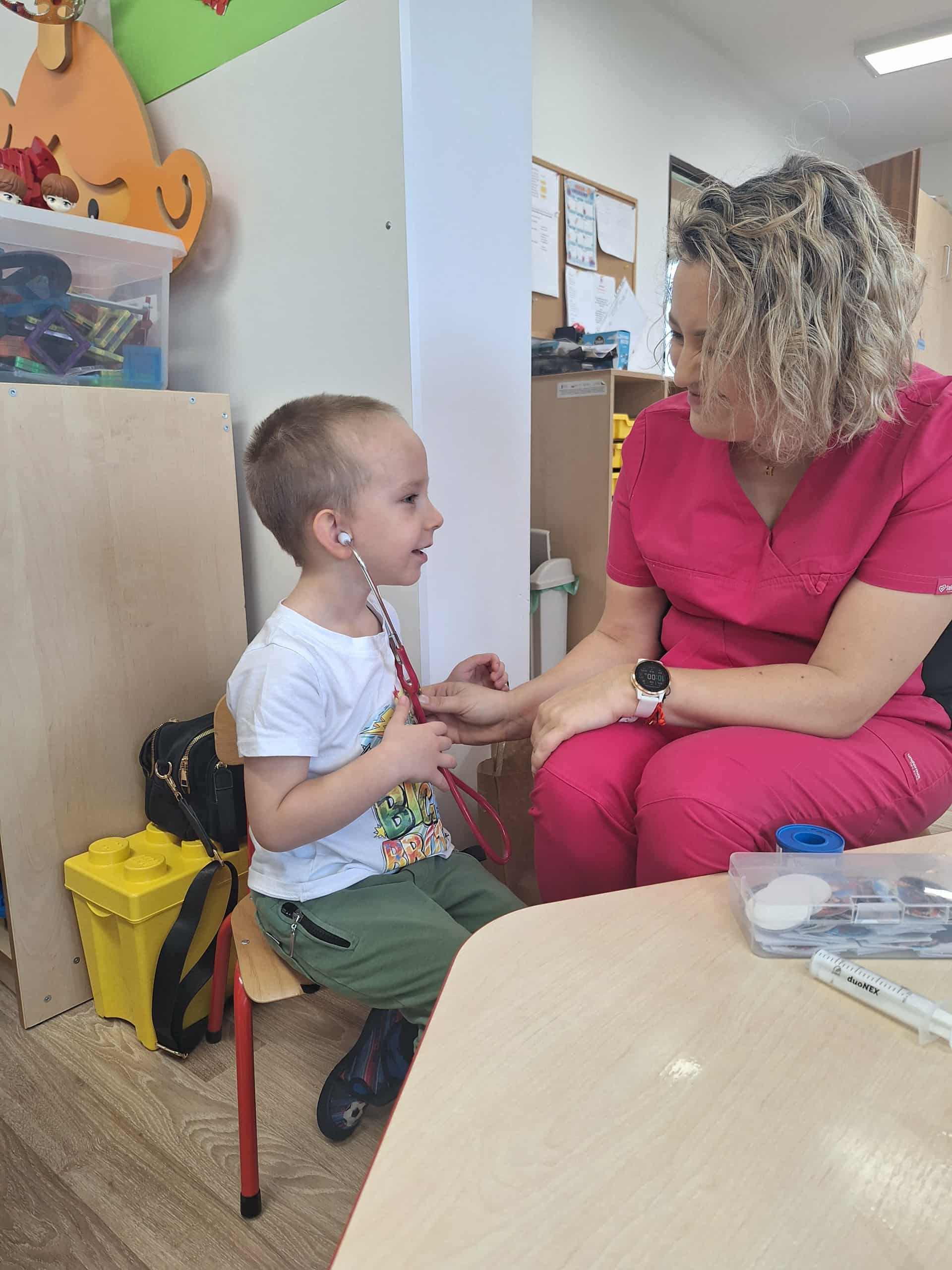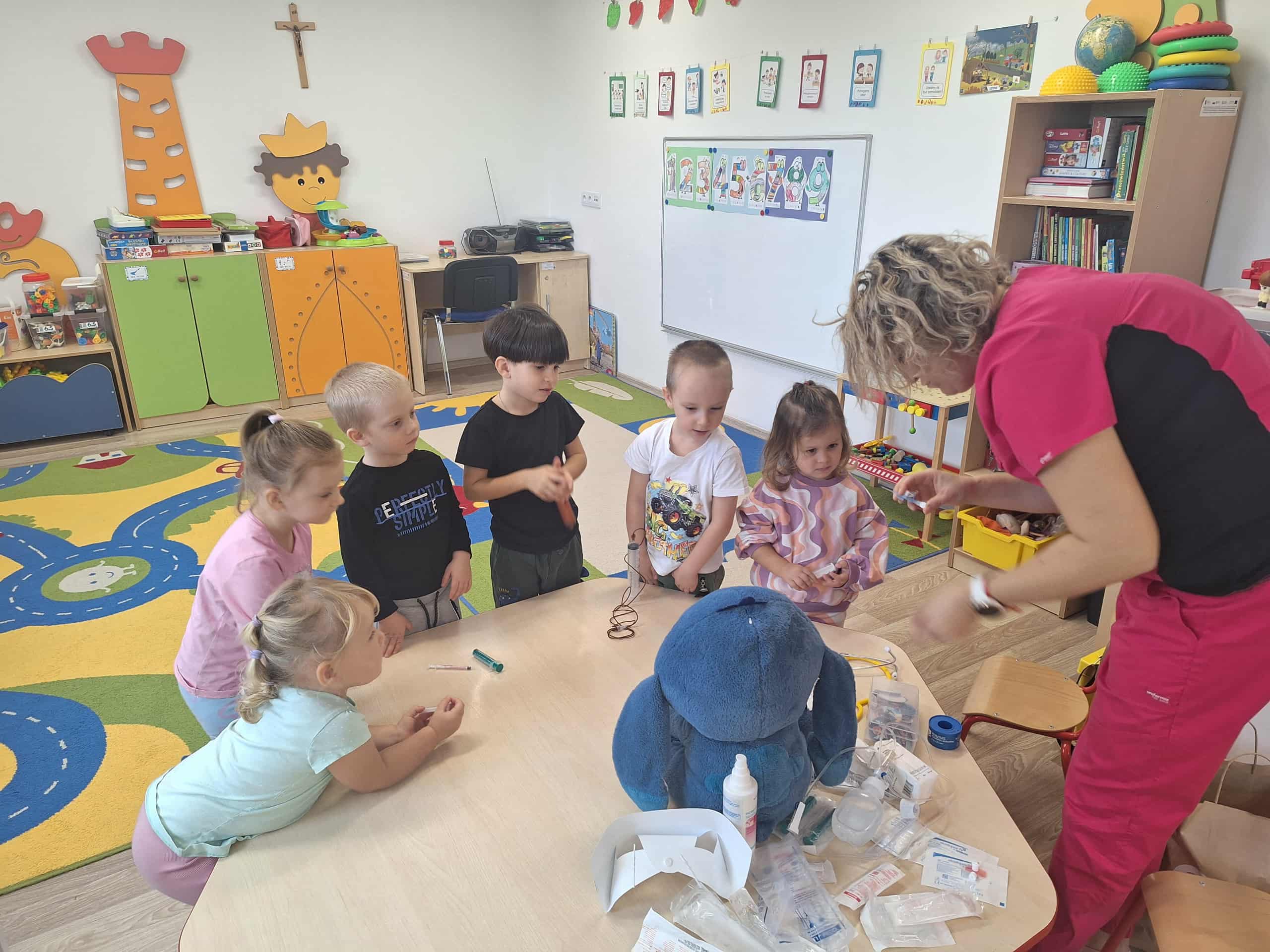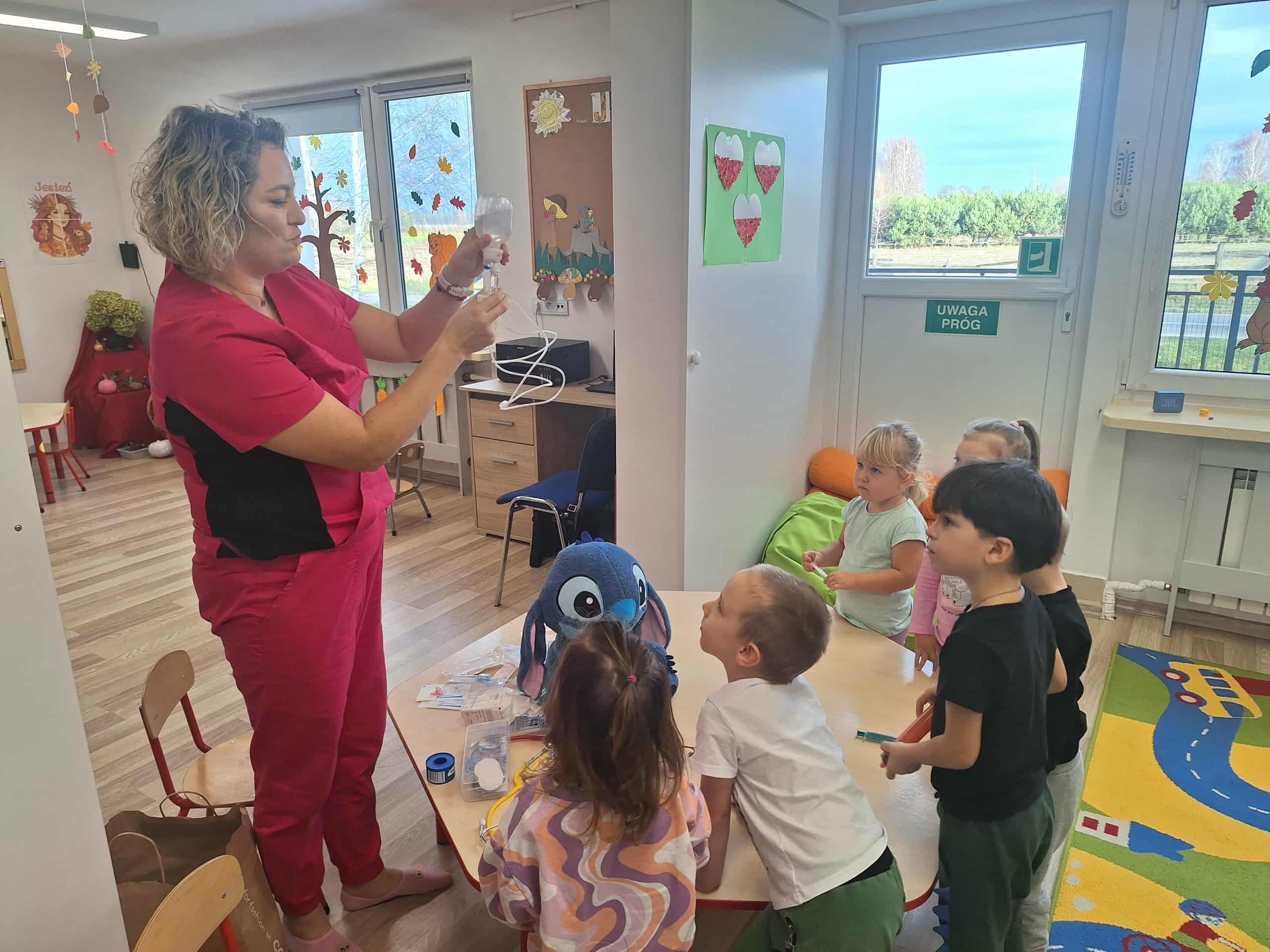 Największą atrakcją była możliwość obejrzenia apteczki i sprzętu medycznego, a także nauka prostych zasad udzielania pierwszej pomocy. Spotkanie przebiegało w atmosferze ciekawości i radości – maluchy zadawały mnóstwo pytań i chętnie uczestniczyły w pokazach.