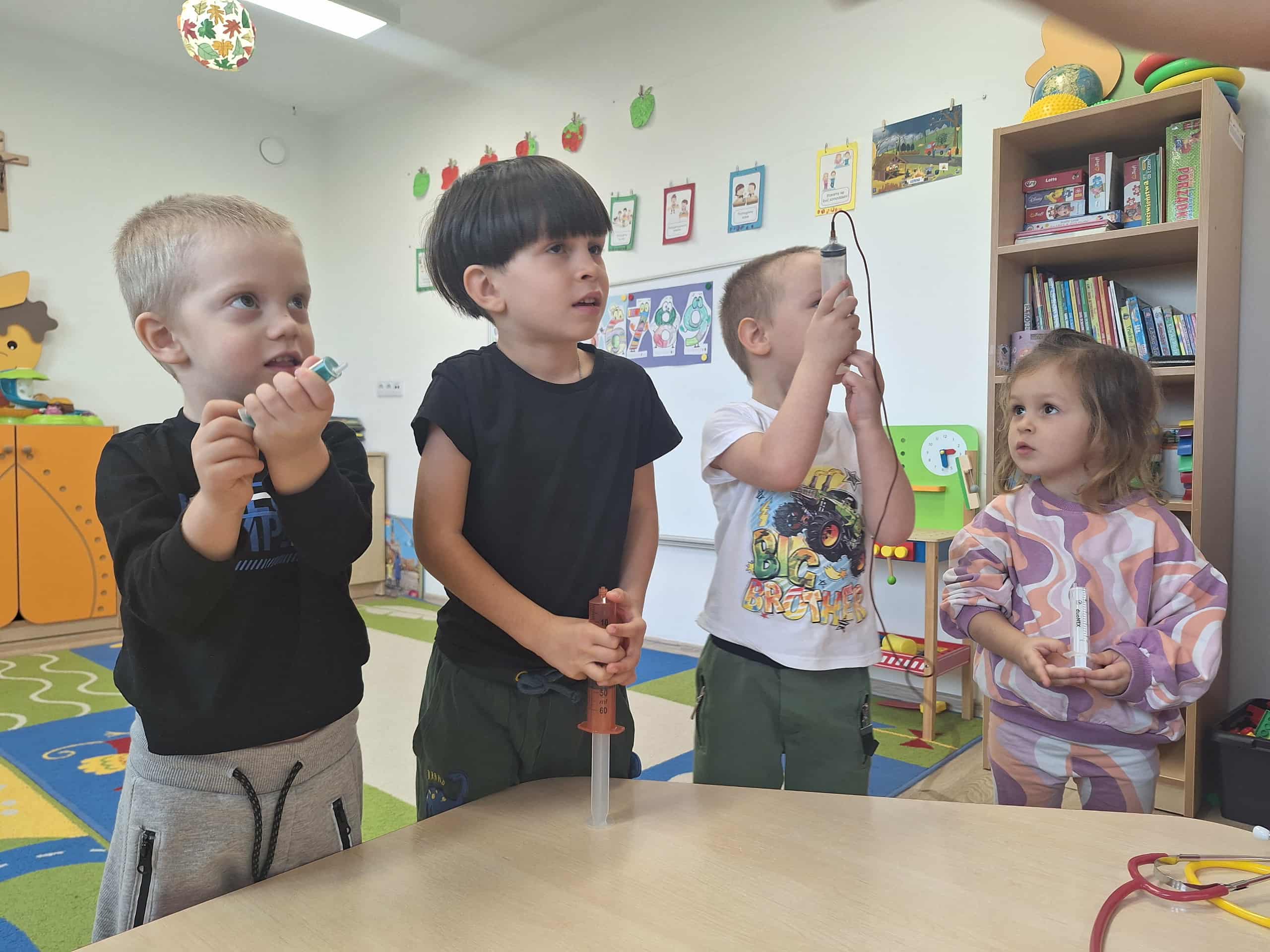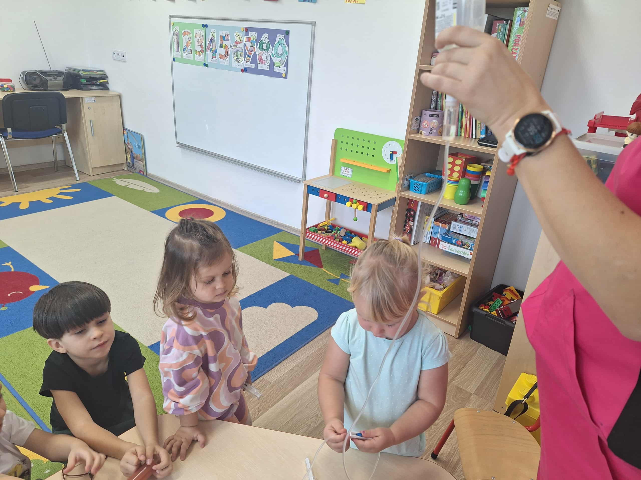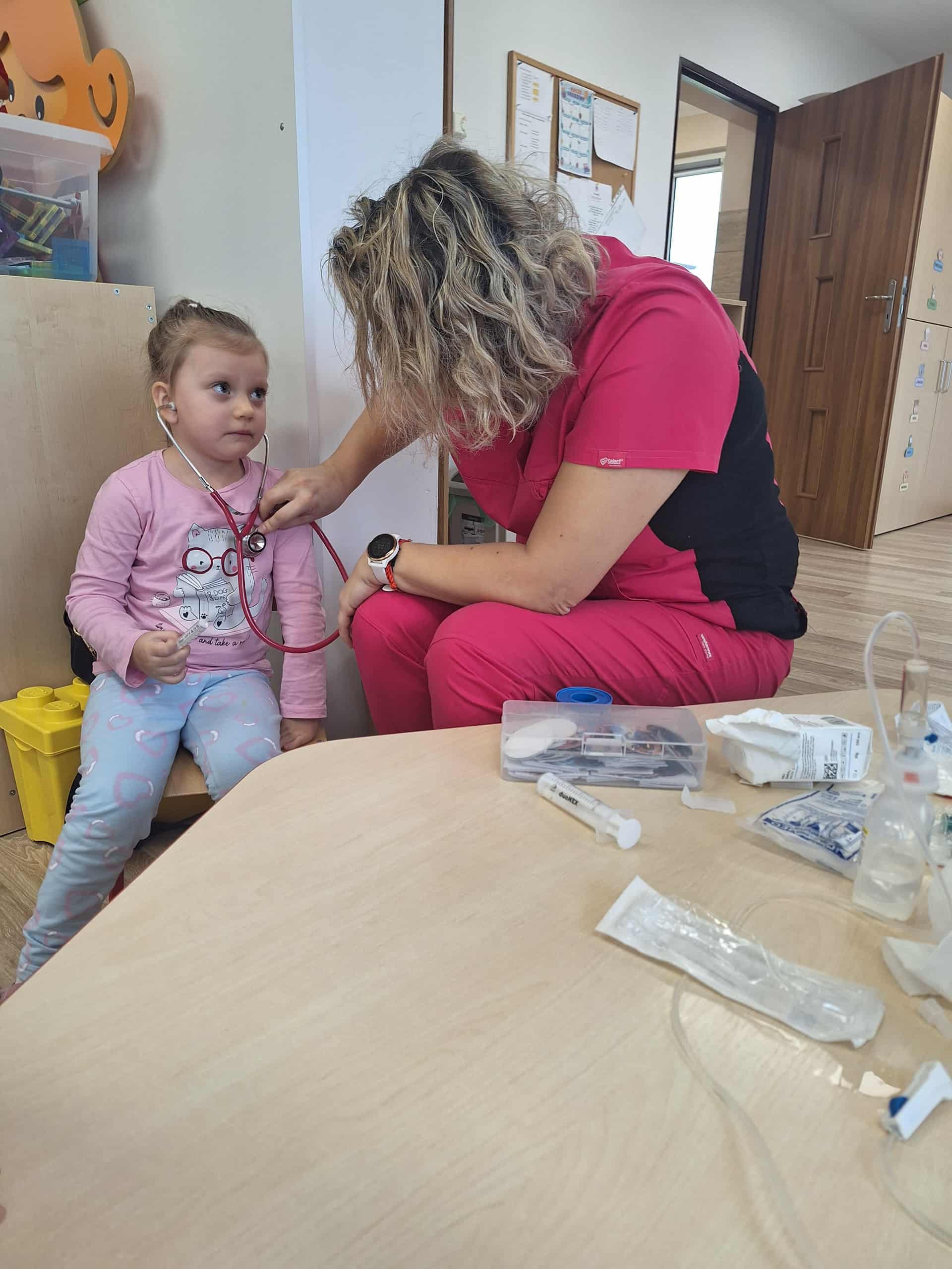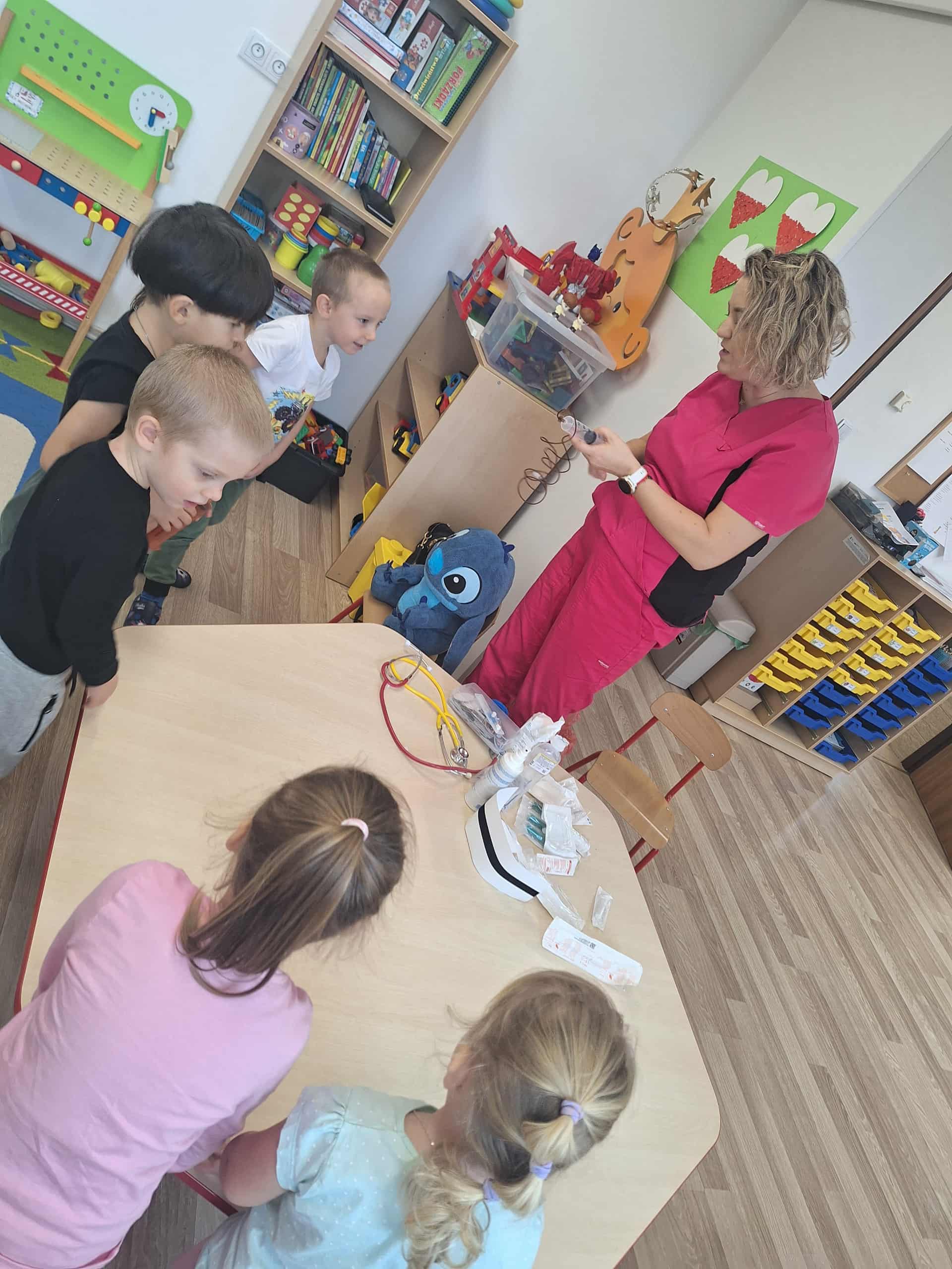 Największą atrakcją była możliwość obejrzenia apteczki i sprzętu medycznego, a także nauka prostych zasad udzielania pierwszej pomocy. Spotkanie przebiegało w atmosferze ciekawości i radości – maluchy zadawały mnóstwo pytań i chętnie uczestniczyły w pokazach.