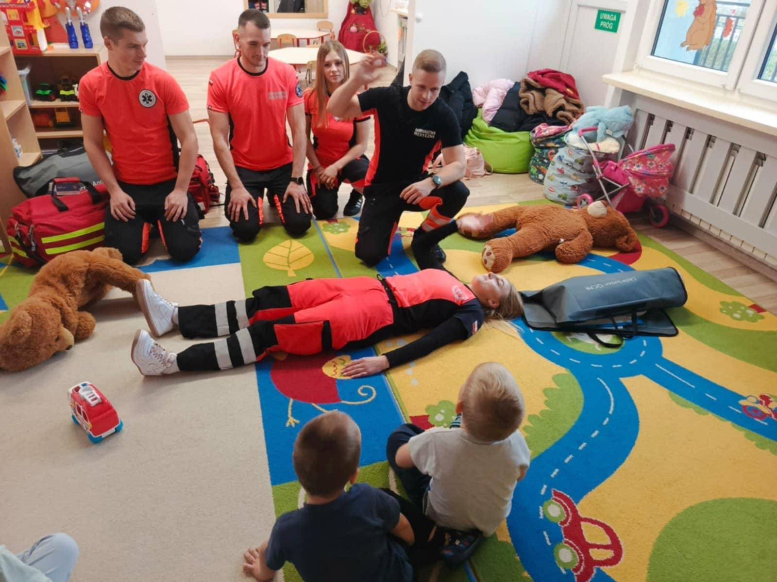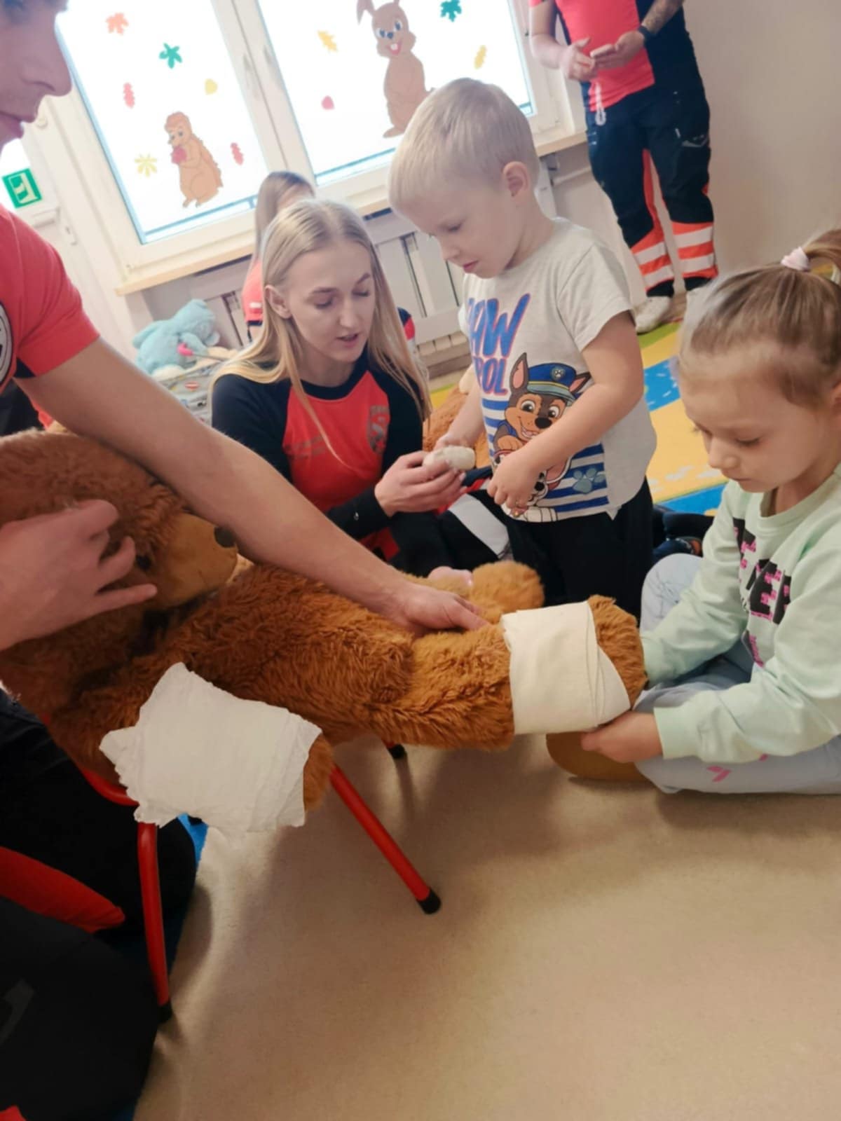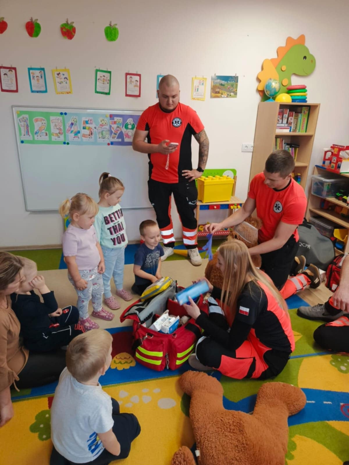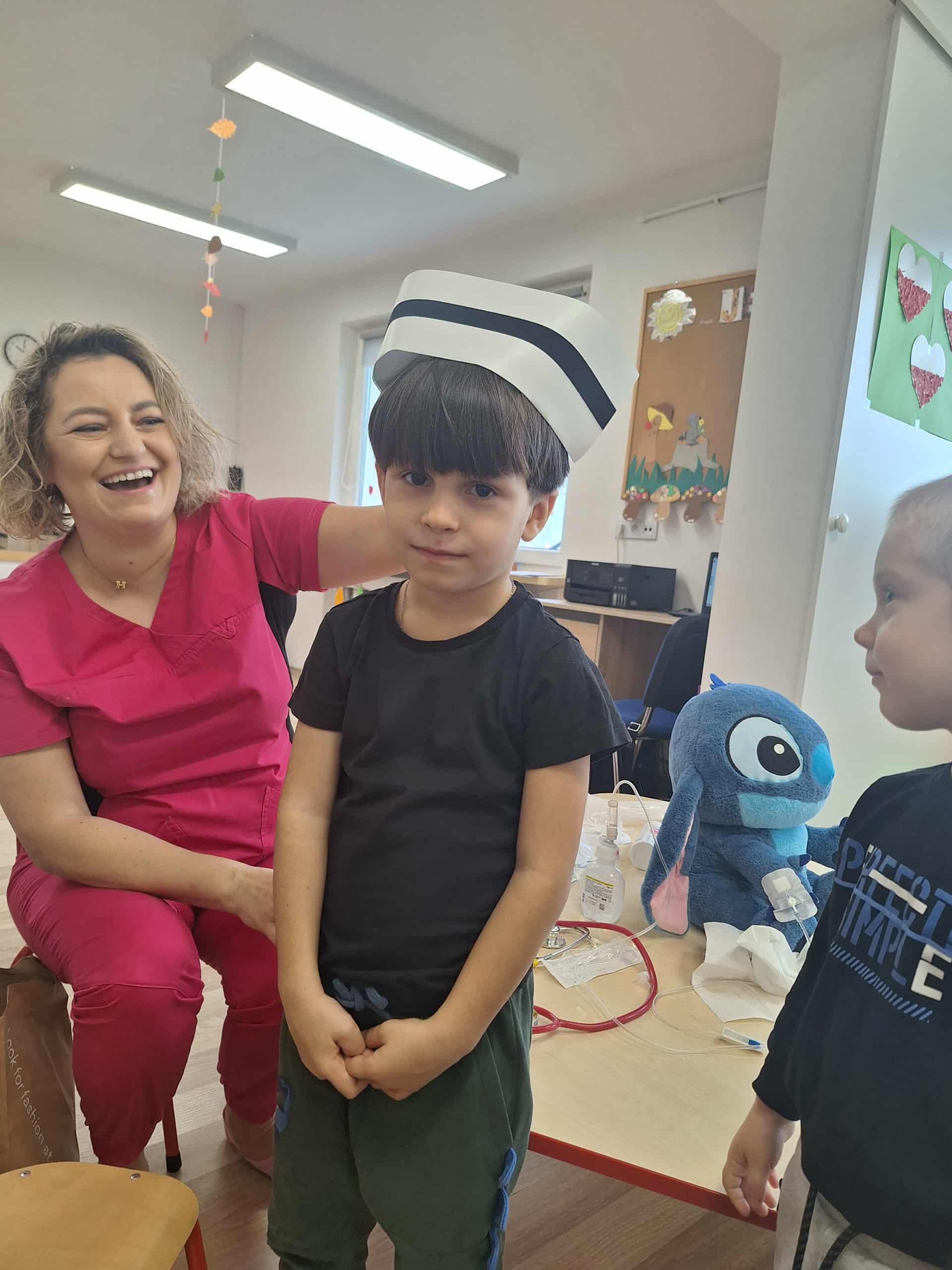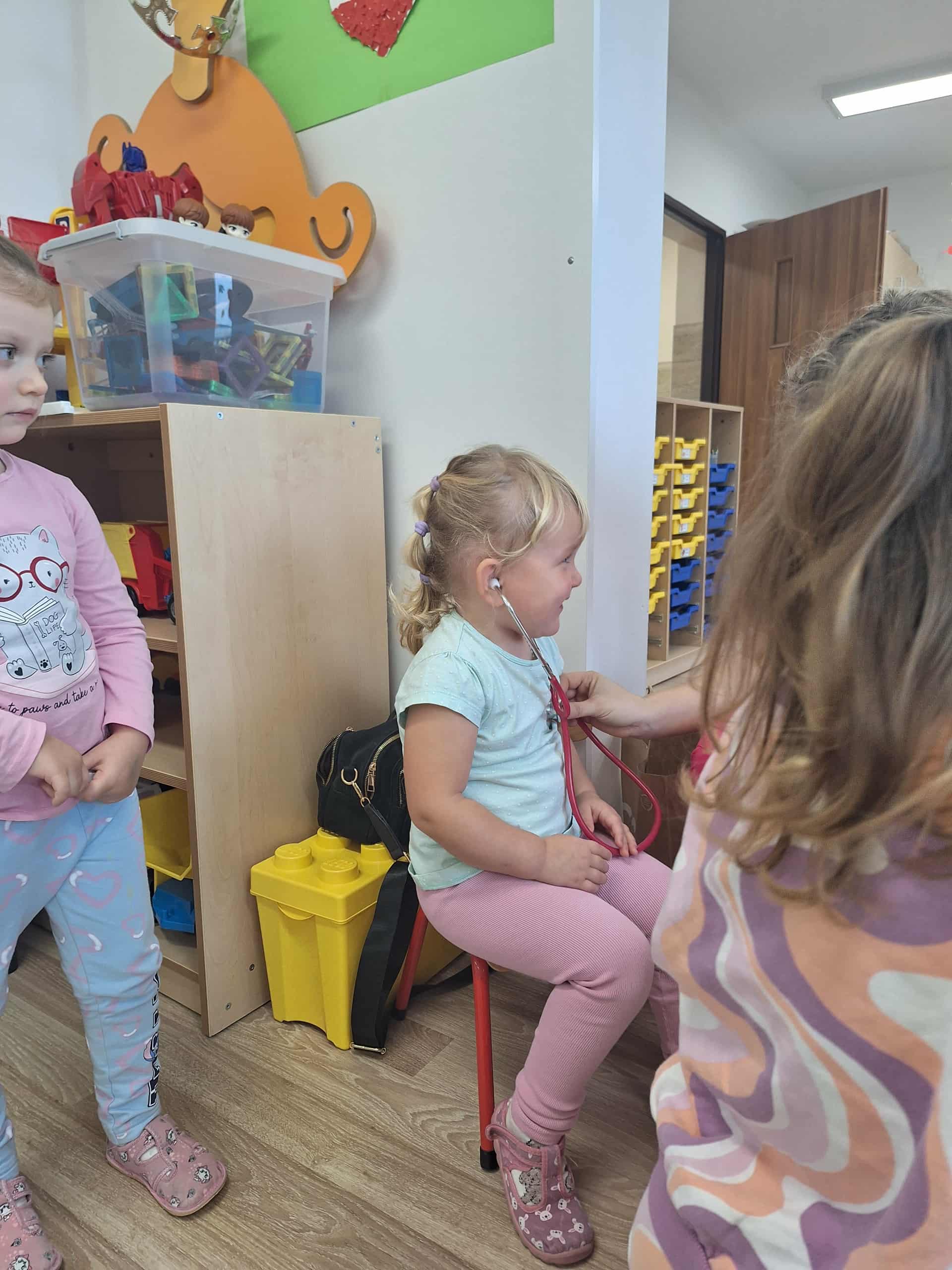 Największą atrakcją była możliwość obejrzenia apteczki i sprzętu medycznego, a także nauka prostych zasad udzielania pierwszej pomocy. Spotkanie przebiegało w atmosferze ciekawości i radości – maluchy zadawały mnóstwo pytań i chętnie uczestniczyły w pokazach.